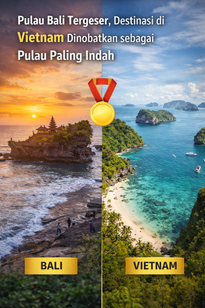 Pulau Bali yang selama ini dikenal sebagai destinasi wisata paling indah di dunia disebut mengalami pergeseran posisi dalam sejumlah penilaian pariwisata internasional. Dalam daftar terbaru, predikat pulau paling indah kini ditempati oleh salah satu pulau di Vietnam yang dinilai menawarkan keindahan alam alami, pantai bersih, serta suasana yang masih relatif tenang.