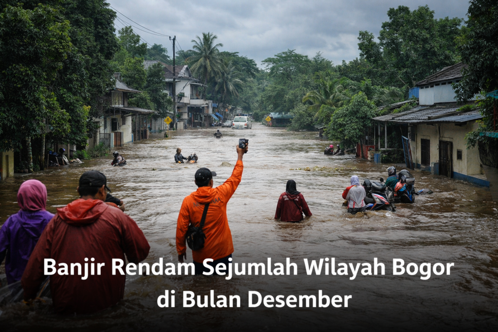 Hujan dengan intensitas tinggi yang mengguyur Bogor pada Desember ini menyebabkan banjir di beberapa wilayah permukiman. Luapan sungai dan buruknya drainase membuat air menggenangi rumah warga serta akses jalan, sehingga aktivitas masyarakat terganggu.